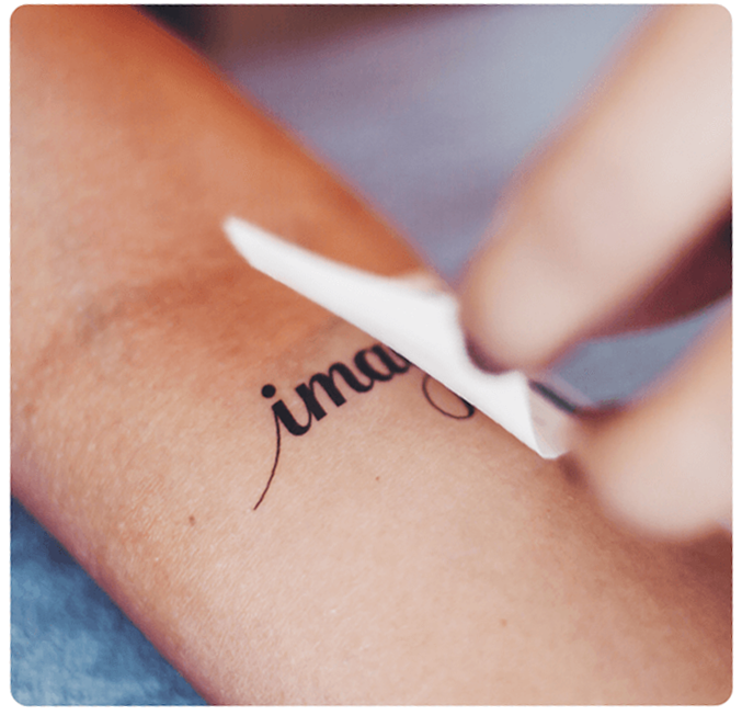 3. Coloca el tatuaje en tu piel del lado pegajoso, el mismo lado del que retiraste el plástico.