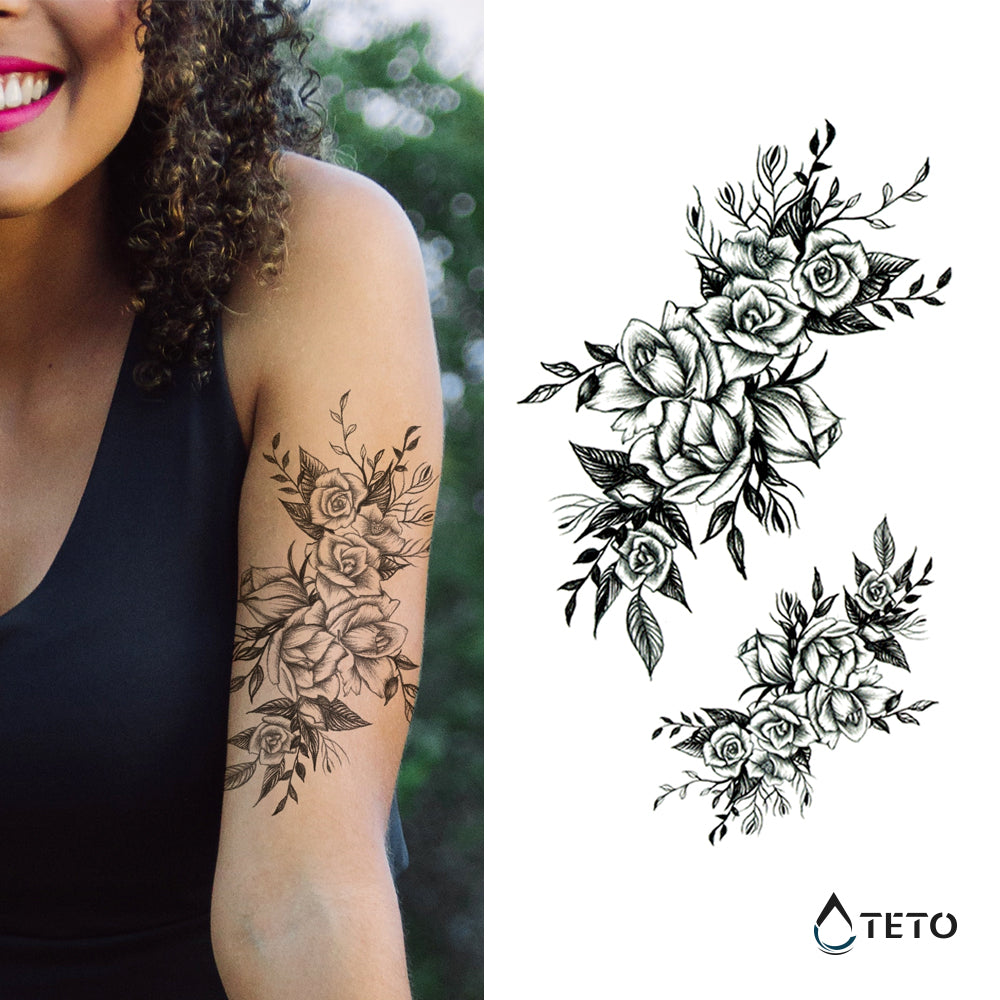 Significado del tatuaje: Las flores son un tatuaje ideal. Se ven bonitos y siempre dejan una impresión positiva. El elegante diseño floral llama la atención al instante. Una flor que florece representa la juventud, el amor, la esperanza y la belleza. El dúo de flores también puede representar el aspecto filosófico de la vida y la muerte.