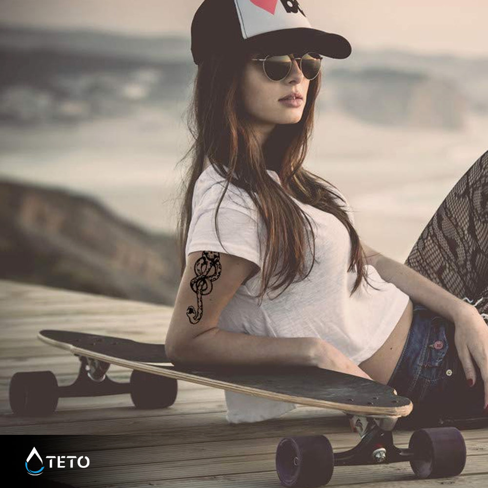 Significado del tatuaje: No hay duda de que un tatuaje de serpiente simboliza la fuerza. Una serpiente es un reptil poderoso. Algunas serpientes tienen veneno, otras son depredadores francamente rapaces, lo que las convierte en símbolos peligrosos y poderosos. La capacidad de la serpiente para mudar su propia piel hace que pueda interpretarse como un símbolo de renacimiento, cambio, transformación o curación. Históricamente, en muchas culturas, la serpiente es un símbolo de fertilidad y fuerza vital creativa.